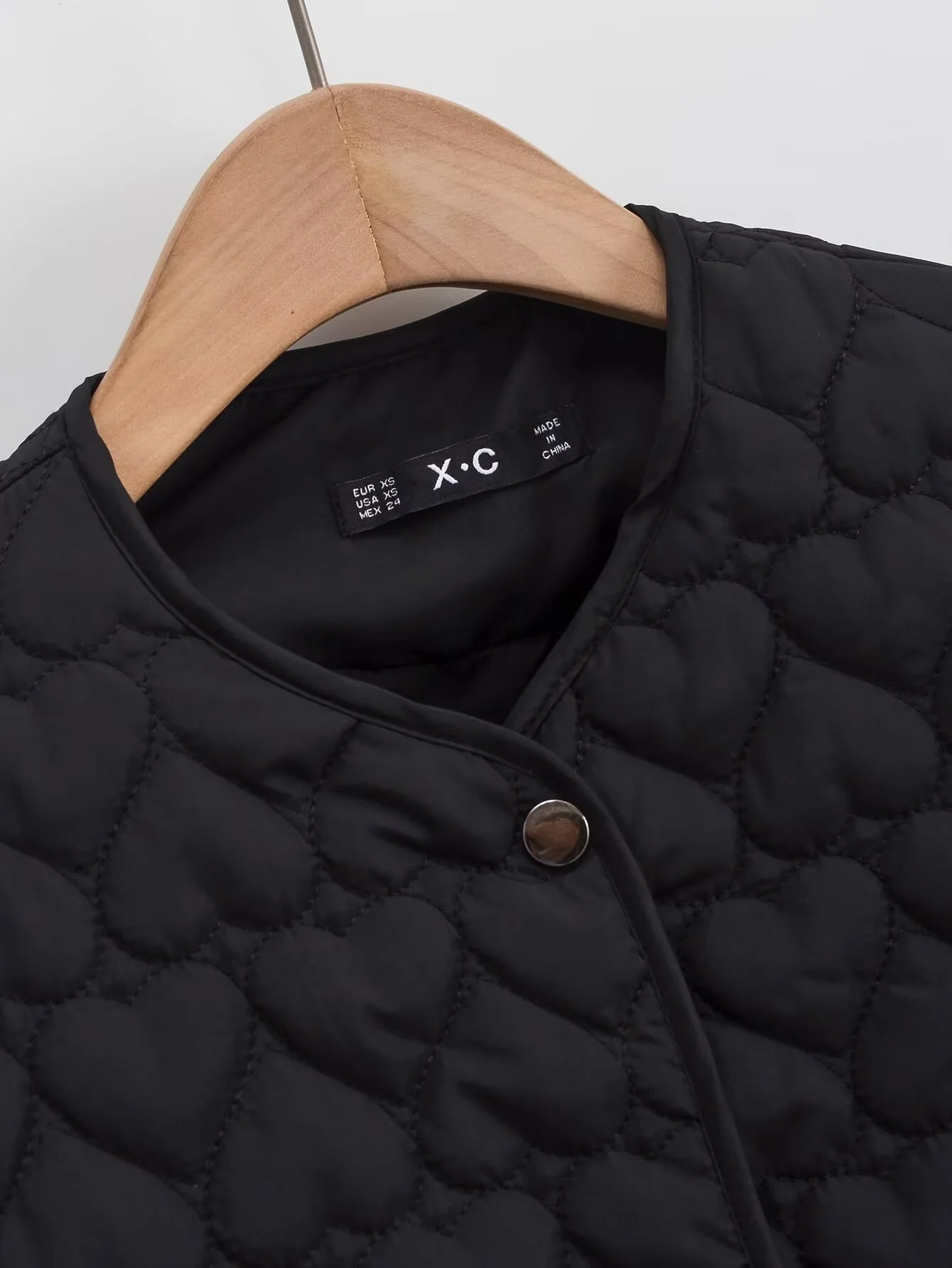 Women's Loose Quilted Cotton Jacket | Heart-Shaped Commuter Autumn Outerwear